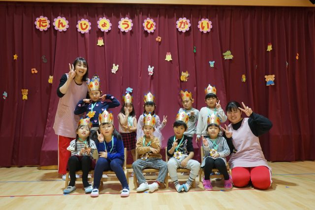 今日は11月の誕生日会がありました。インタビューの時、緊張する姿も見られましたが自分で発表するお友達が多く、とてもかっこよかったです。先生の出し物では、色々なものに変身する「ばけばけばけばけばけたくん」のお話でした。クイズ形式で食べ物のヒントを出すと元気よく答えてくれました。美味しい食べ物に化けてしまう、ばけたくんに大興奮!!!最後はみんなで誕生日の歌を歌って楽しい気分で終わりました。11月生まれのお友達、お誕生日おめでとうございます。