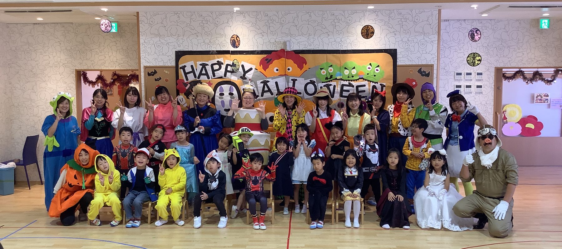 今日はハロウィンパーティーがありました。可愛い、かっこいい衣装を着て朝から嬉しそうでした。