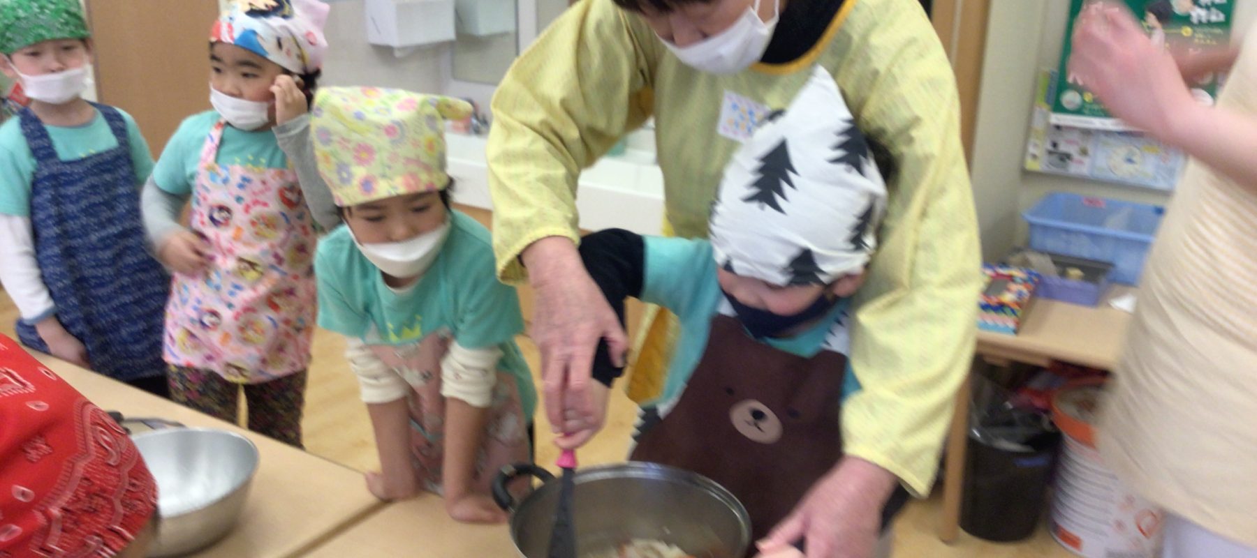 5歳児クラスで食育の一環としてクッキングを行いました。内容は「カレーライス作り」です。自分達で野菜を切ったり炒めたり、実際にお米を研いだり。そして、始める前に「カレーライスの歌」を歌ったことで、「♪にんじん~たまねぎ~♪」と鼻歌を歌いながら楽しんでいた子ども達です!ルーもなんと手作り!11種類の調味料を見て大喜びでした。カレーの匂いがすると「お腹空いた~」とお腹をさすっている姿も見れました。出来上がり実際に食べたときには、大満足の子ども達でした。