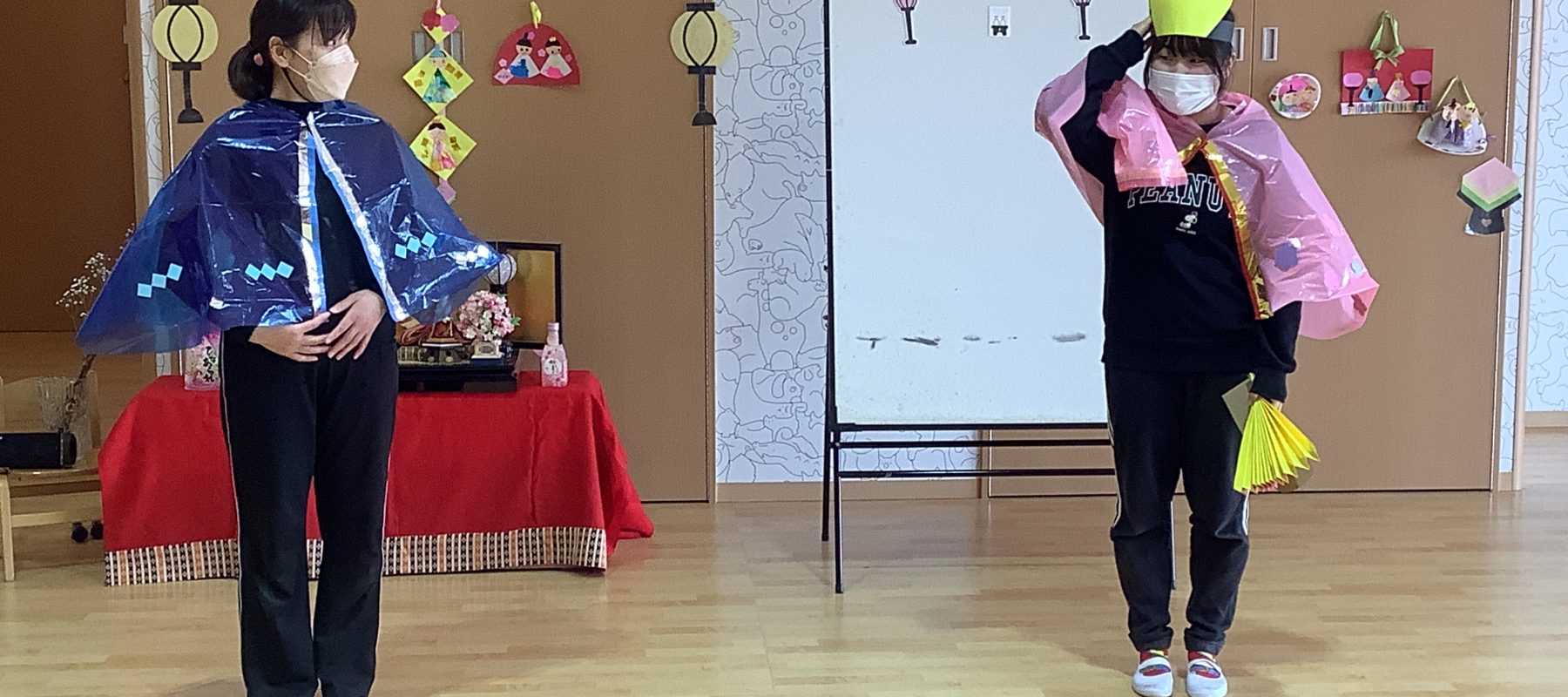 今日は、ひなまつり集会がありました。クイズをしたりパネルシアターでは歌に合わせて7段のひな人形を作ったりして楽しみました。わくわくの日のチームに別れてひしもちゲームをして「頑張れ!」と大盛り上がりだった子ども達でした。本日の給食は、ひな祭りにちなんで、ちらし寿司、から揚げ、菜の花のお浸し、花麩のすまし汁、デザートはオレンジゼリーでした。