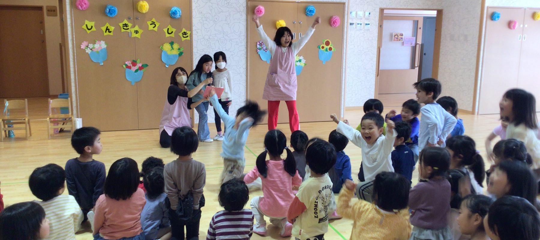 今年度の進級式は、乳児クラス・幼児クラスでわかれて集まりホールで行いました。乳児クラスでは「おおきくなるってどんなこと?」かイラストを見ましたよ。あおむしが大きくなったらちょうちょに!赤ちゃんはお兄さんお姉さんに!みんなは、ひとつ大きくなったら何組かな?とやり取りしながら楽しみました。幼児クラスでは、実際に次のクラスになったら出来る事を写真でみました。お当番や遠足など様々な楽しい事が待っていて期待に胸を膨らませる子ども達でした。そしてドキドキの担任発表!それぞれクラスごとに発表され先生たちが前に出てくると「やったー」と盛り上がりましたよ。その後は新しいクラスのお部屋に行って、新しいおもちゃや先生と一緒に遊びました。会の司会は年長のひまわり組さんにお願いし、各クラスに行ってお手伝いもしてくれましたよ。さすが4月から小学生!また新しい1年がはじまりますね。たくさん遊んで素敵な思い出を作って下さい。またひとつおおきくなったみんな、おめでとう♡