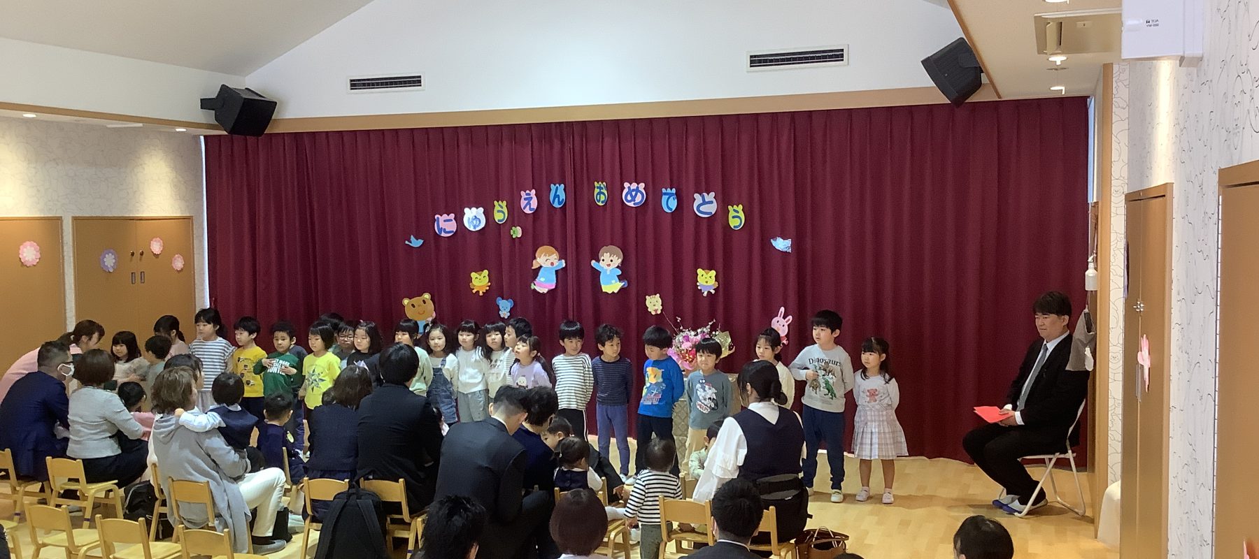 年長組さんからのお祝いの歌がとても上手でした。明日からの保育園生活を楽しんでくださいね!